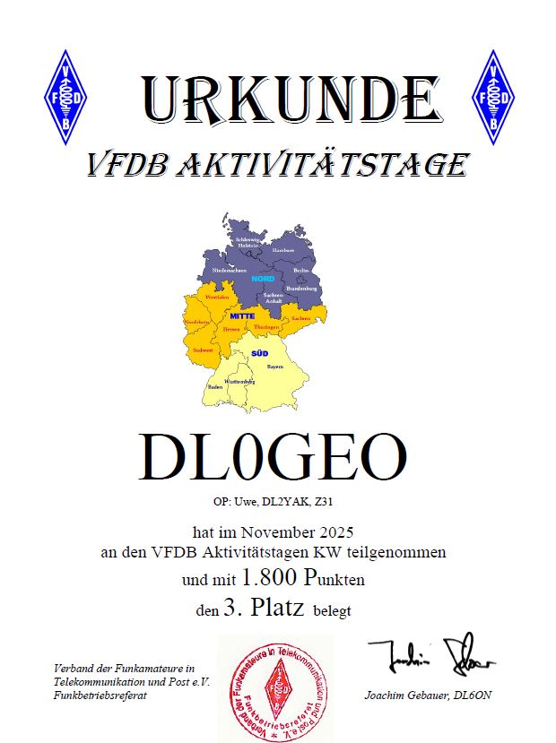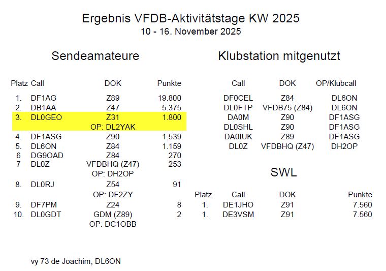 Zur Info an Euch. DL0GEO / Z31 immerhin Platz 3 bei den VFDB Aktivitätstagen.